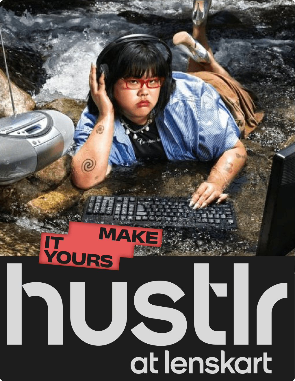 hustlr is Lenskart’s best-selling brand and is widely known for its iconic frame. its a casual eyewear that comes in more than 26 colours. Lenskart wanted to revamp the entire hustlr experience and cater it towards the growing genz market. this was a conceptual project.